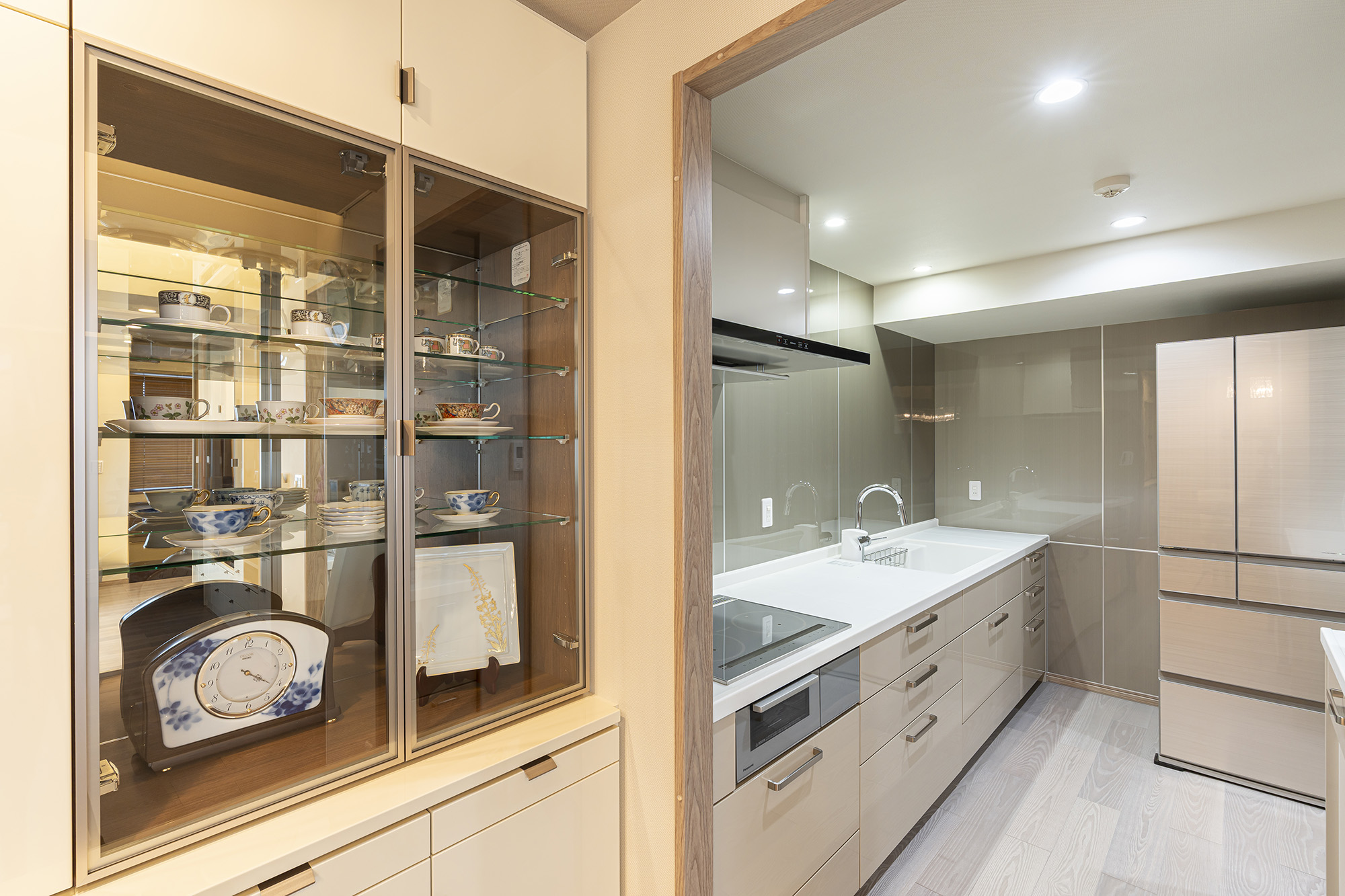 お施主様が淡い落ち着いたベージュ系がお好きなため、全体的に柔らかく、落ち着いた雰囲気にまとまっております。