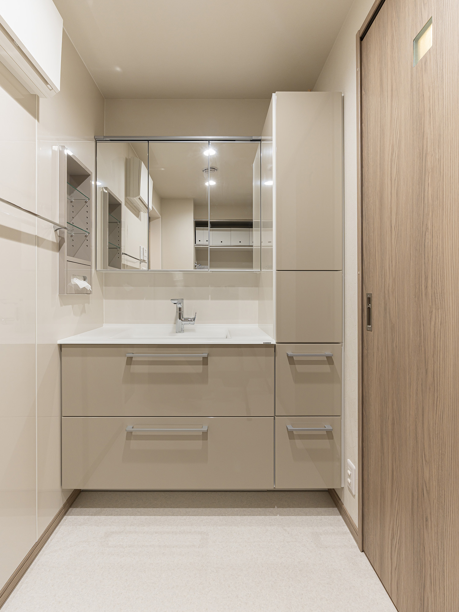 鏡が欲しいという奥様のご希望でしたので、こちらに設置させていただきました。